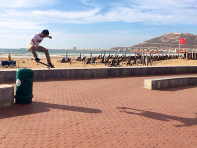 2.進行方向へ視線を向けて、ノーリーと同じようにノーズを少し前に蹴って、キック足でこすり上げよう。