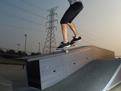 バックサイド 5-0グラインドは、バックサイド(背中側)にあるセクションへエントリーし、前のウィールを浮かせた状態で後方のトラックのみでグラインドさせるトリック。