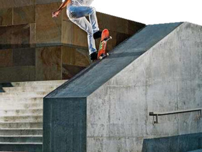 バックサイド テールブラントスライドは、バックサイド(背中側)にあるセクションへエントリーし、デッキを斜めにしテール部分とウィールを擦らせてスライドするトリック。
