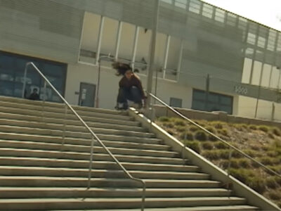 ファイアークラッカーは、ステアで行うテクニックで、テールを階段の角にバシバシ当てながら勢いよく滑り下りるトリック。