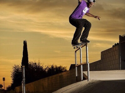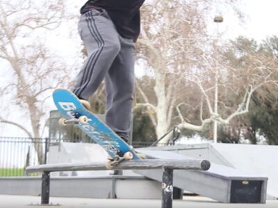 5-0グラインドの応用系トリックで、セクションの下にノーズを倒すフィーブルグラインドとは反対に、サラダグラインドは上に上げておくのが違いだ。
